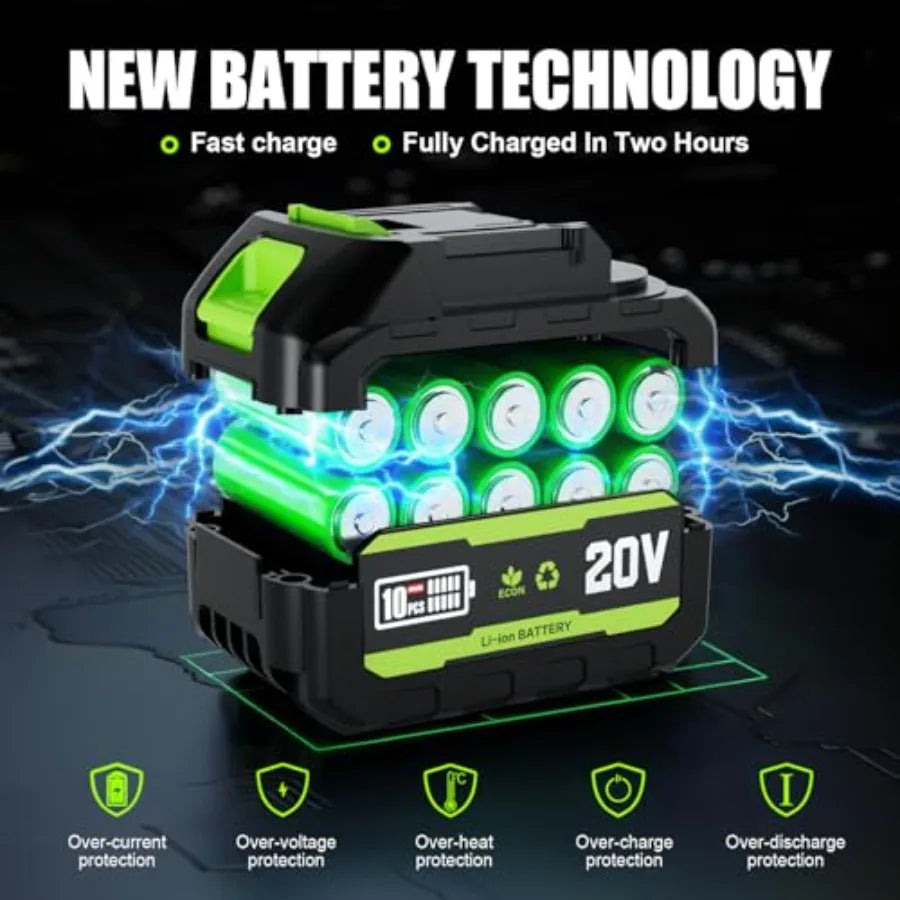 【Easy to Use and Maintain】- Designed for user convenience, this battery chainsaw for trees features a tool-free chain tensioning system, allowing for effortless adjustments. The low-maintenance design ensures you can focus on your tasks without worrying about complex upkeep.