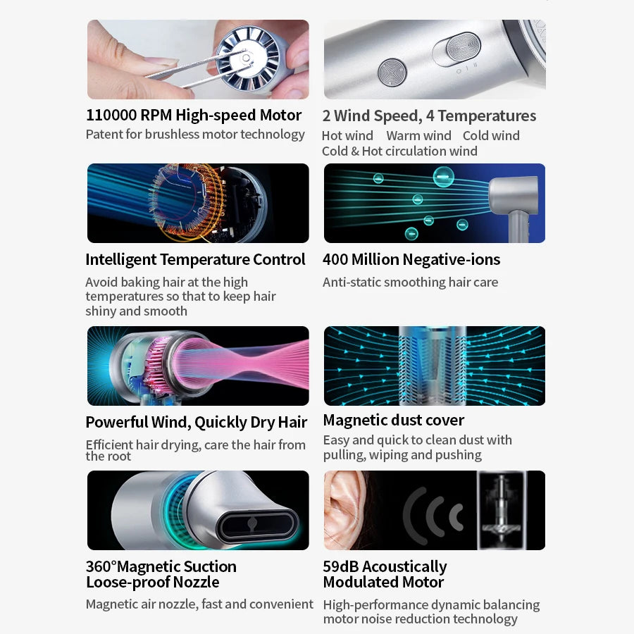 High Speed Hair Dryer 110000RPM Professional Care for Home Travel
