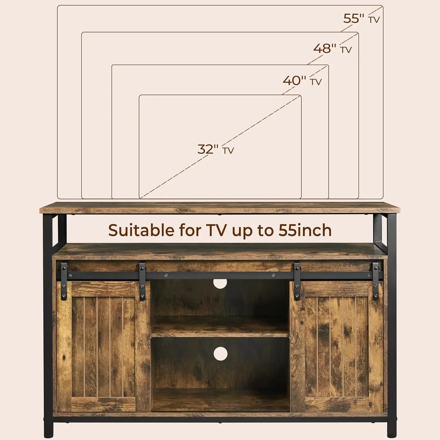 TV Console Table for 55″ TVs: Measuring 120 cm L × 40 cm W × 77 cm H / 47.5″ L × 16″ W × 30.5″ H, this sliding barn door TV storage cabinet suits TVs up to 55-inch. While, a slightly larger TV is also acceptable if it is not heavier than 50 kg/ 110 lb
